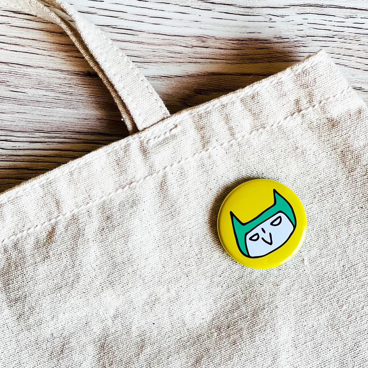 ねこっぽロボット「ウタ」のドヤぁ顔の缶バッジ。